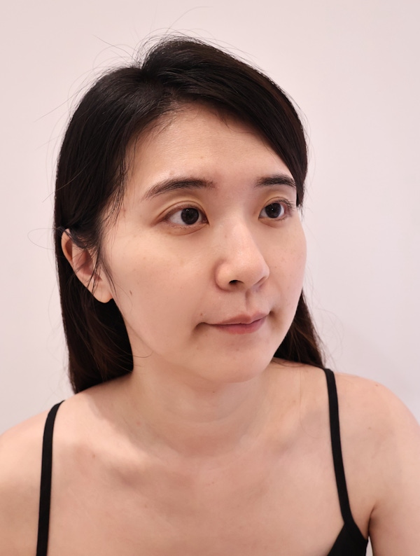 前兩週其實沒有很驚人的變化,比較像是臉部血色變好,隔天起床臉比較不拋拋感。大概到第三、第四週,開始比較明顯感覺到輪廓線的穩定度,上妝時覺得臉型比較立體,下顎線與法令紋最容易顯老的部位,也會特別加強,拍照時也更上相